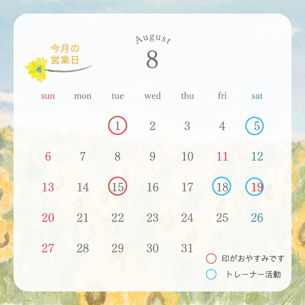部活のOFF、お仕事のお休みに身体のケアに来てもらえるようにお盆も営業します!