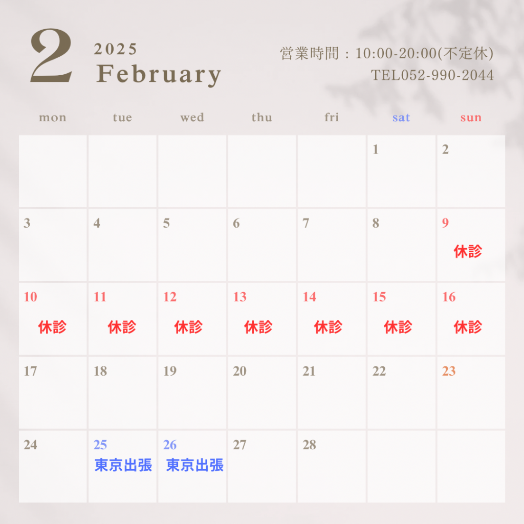2月9日日曜日から2月16日日曜日の営業は休診とさせていただきます。